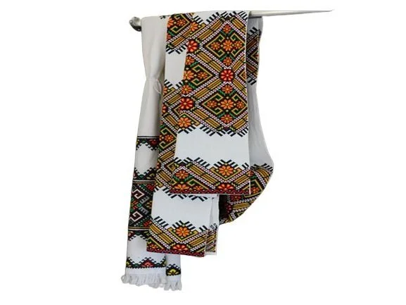 The symbolism of embroidery has been passed down from generation to generation. The embroidered towel, interlaced with threads of various colours, represents all aspects of human life: family, love, tradition, hardship and faith in God. The couple may stand on one of the towels to indicate the new life they now begin. Another towel is used to tie their hands together during the ceremonial walk, emphasizing the unity they now share in their common journey.